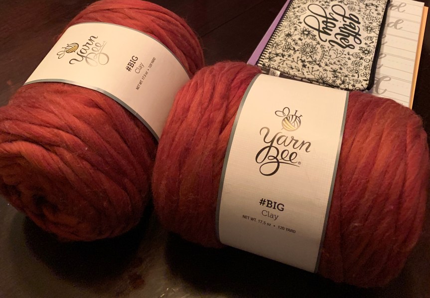 But we actually started out last Tuesday making one of the knitted arm blankets. Something we hadn’t really planned on at all.   Man is that yarn expensive. It is a super bulky yarn and let me say it is a bit of an investment. We decided to go with a slightly smaller bulk. We don’t want to break our budget with these projects. We got the yarn at Hobby Lobby and we each needed two skeins. They are really large. They were on sale 30% off so we got them for about 15.00 each so $30.00 for each blanket.  The super bulky that we really wanted would have been about $75.00 per blanket. A little pricey for me on a beginner project.