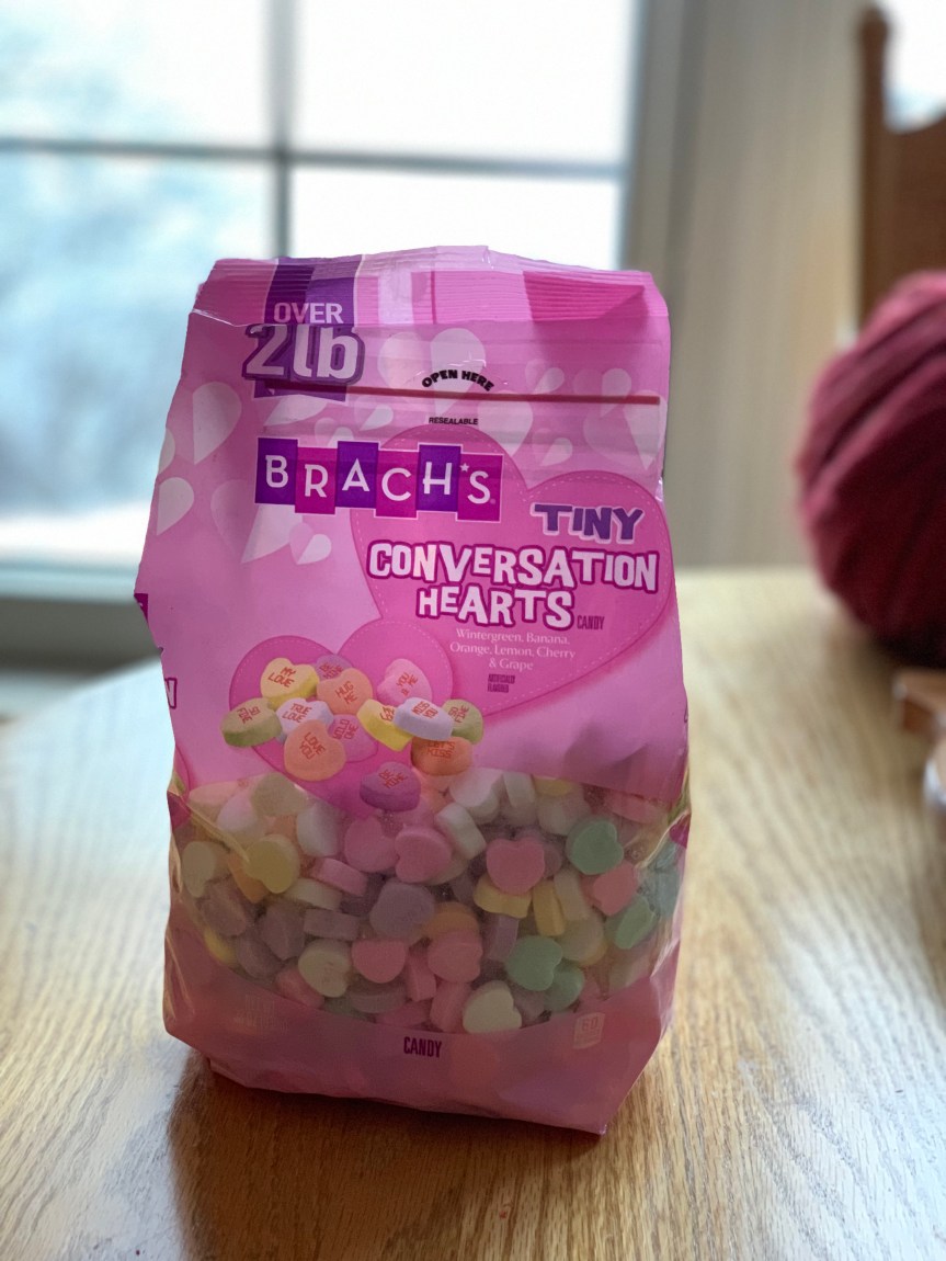 Some people find these disgusting, this includes my husband. But he knows how very much I love them. I could eat them all year long. Probably a good thing they are only around at Valentines. So when my husband discovered that they were hard to find in the stores, even Walmart, he got on line and ordered me a two pound bag to munch on. Yes it’s true folks you can get anything from Amazon. I think that’s pretty darned nice of him.