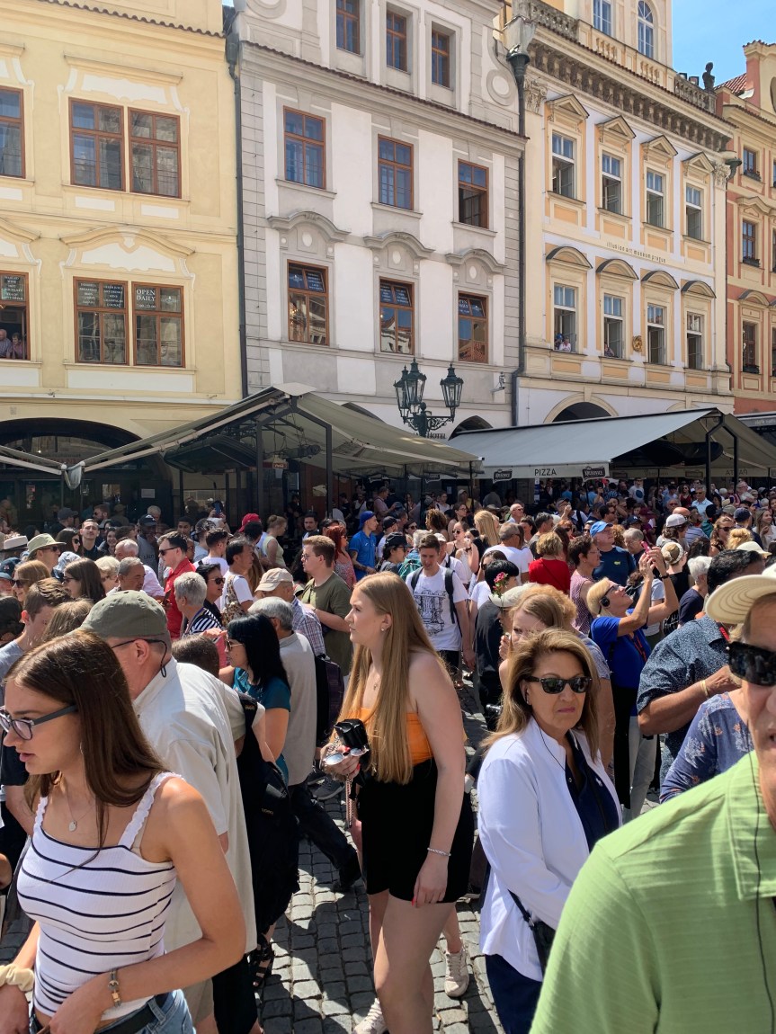 Later that day we traveled 255 miles into The Czech Republic to Prague. I was blown away by the beauty of this city. Prague is considered one of Europe’s most exquisite cities. We stayed at the Grandium Prague We saw the Astronomical Clock. I am adding a link here so you can check out the history of this clock. It is so amazing. http://www.pragueastronomicalclock.info The clock strikes on the hour and the “show” lasts for 26 seconds. You can see all of the people waiting for the top of the hour. It really is something to see.