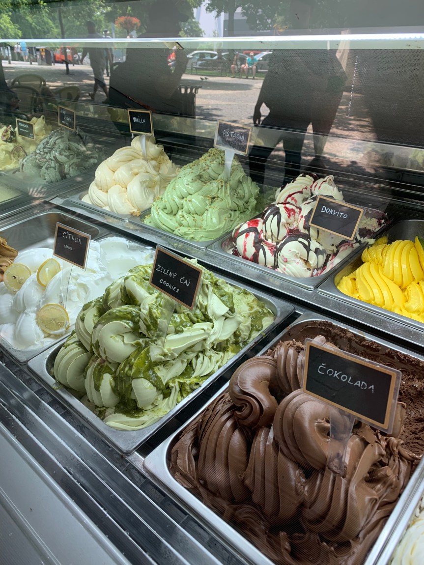 Prague to Budapest was about 329 miles so stopping in Slovakia was a nice break. I did buy a few linens, a hat, I love my hats, and ice cream.