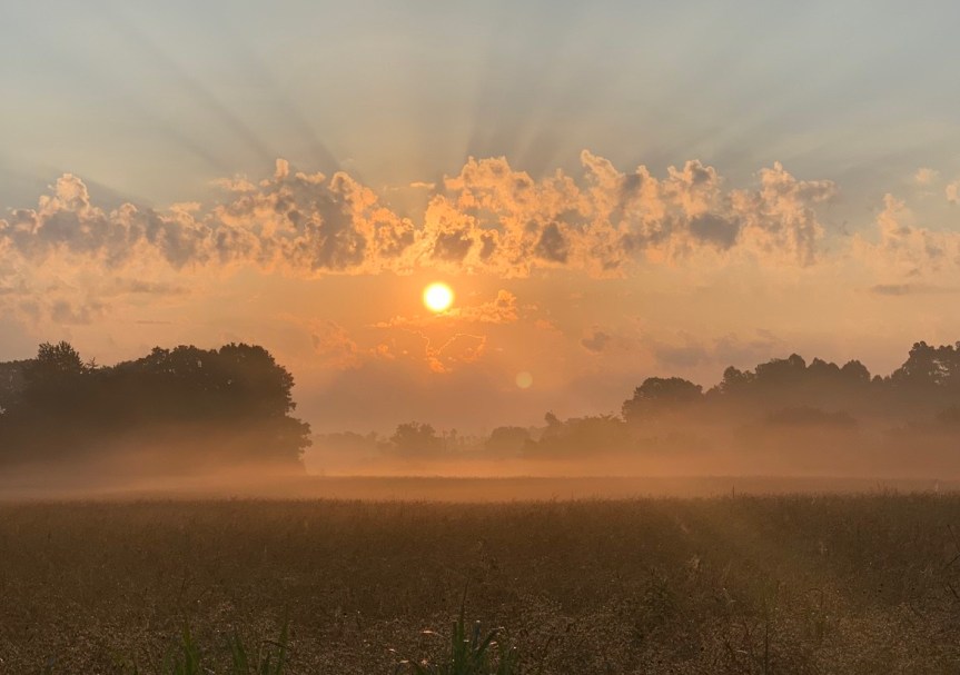 I took this picture one morning on my way to work. I looked over my shoulder while driving down the road and saw this scene and had to turn around and go back to get it. I was late for work but it was totally worth it to me.