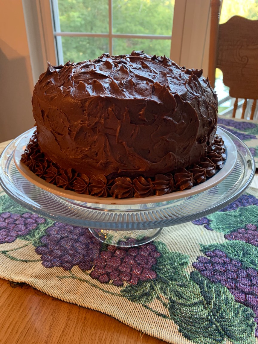 Hello Friends, I have to tell you that chocolate cake is one of my favorite things in the world. This post even includes homemade chocolate frosting. We usually call it icing in the south. You know how much I love to bake. I am a cake person and I love almost all cakes. My husband, on the other hand, loves pies. Check out this post I did awhile back on making a great coconut cream pie. But my husband does love chocolate cake probably more than I do so when I make one I know I will not be eating the entire thing myself. So here goes. This is going to be a four layer cake because I like to split the layers so that I have lots of room for the yummy chocolate cake icing. So here goes: