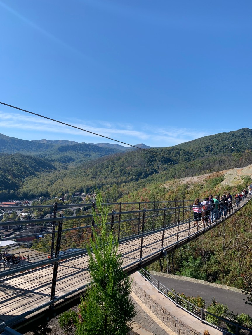 Several years ago a terrible fire burned much of Gatlinburg including homes and attractions. The top part of the SkyLift burned pretty bad. The SkyLift was closed for quite a while. But what happened when the rebuild started was quite a thing to behold. A suspension bridge was installed on the top of the mountain along with a SkyDeck that allows you see for miles. The SkyBridge is 140 feet high at its midpoint and 680 feet across and is the longest suspension bridge in North America. You begin by riding the SkyLift to the top of the mountain.