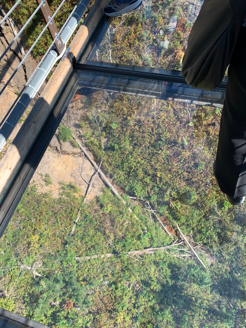 I promise those are not cracks. It’s actually trees that you can see below you.