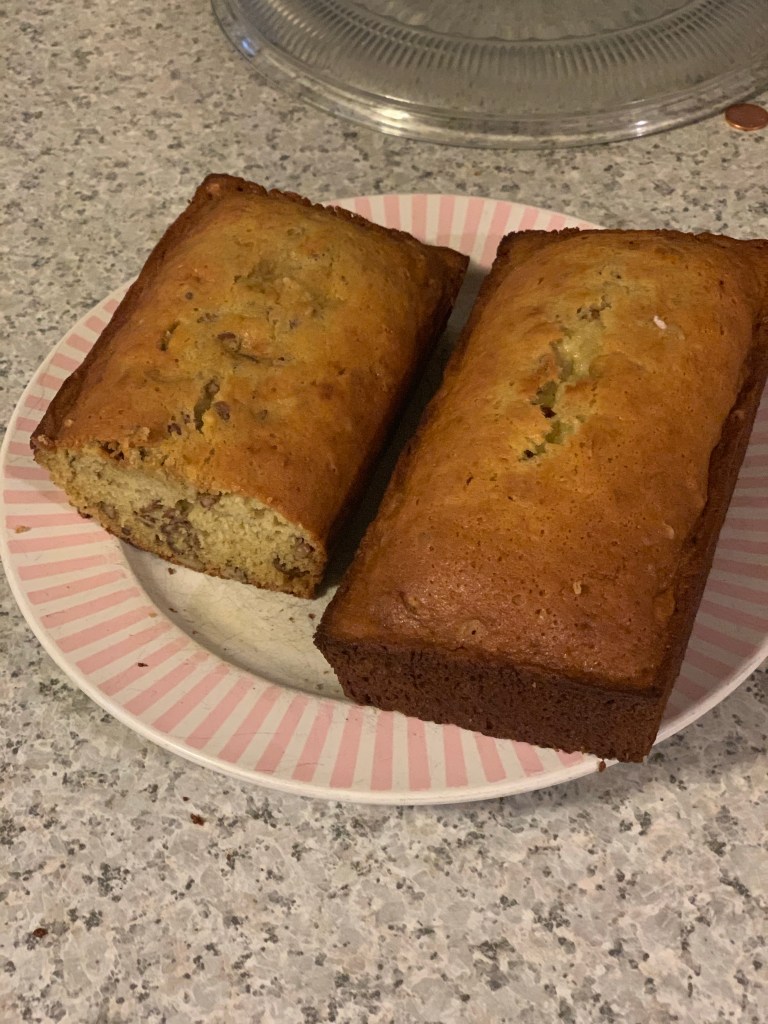 And I made banana bread. I love to make banana bread and cut it into slices and then put those into individual baggies in the refrigerator and when I want a slice for breakfast or a snack I just pull out one of the baggies. I think they stay much fresher this way.