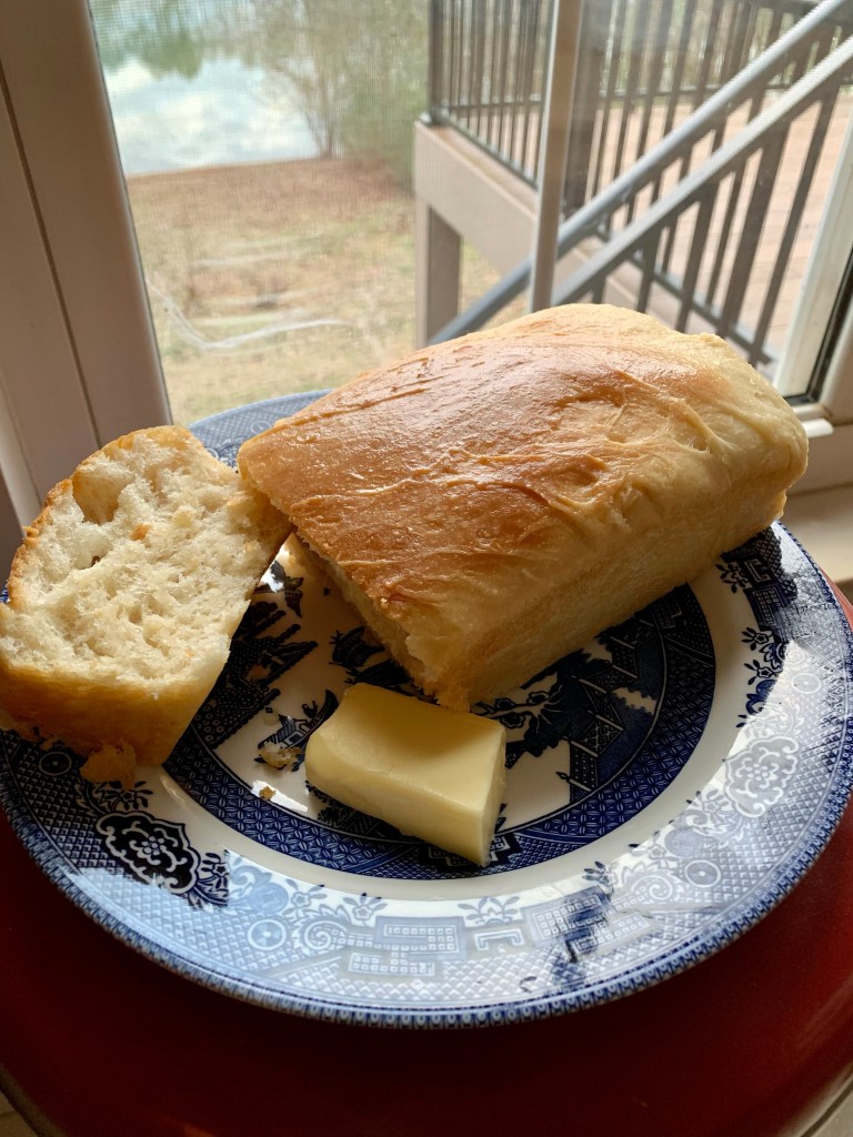 I had the weekend to myself. I did some reading and working on a Valentine’s cross stitch. I baked some bread and walked with the babies. The usual. I like the usual. Not everyone is having that luxury right now.