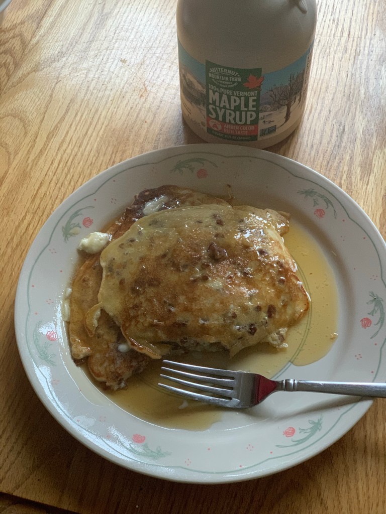 On Sunday morning I made pecan pancakes and bacon for breakfast.