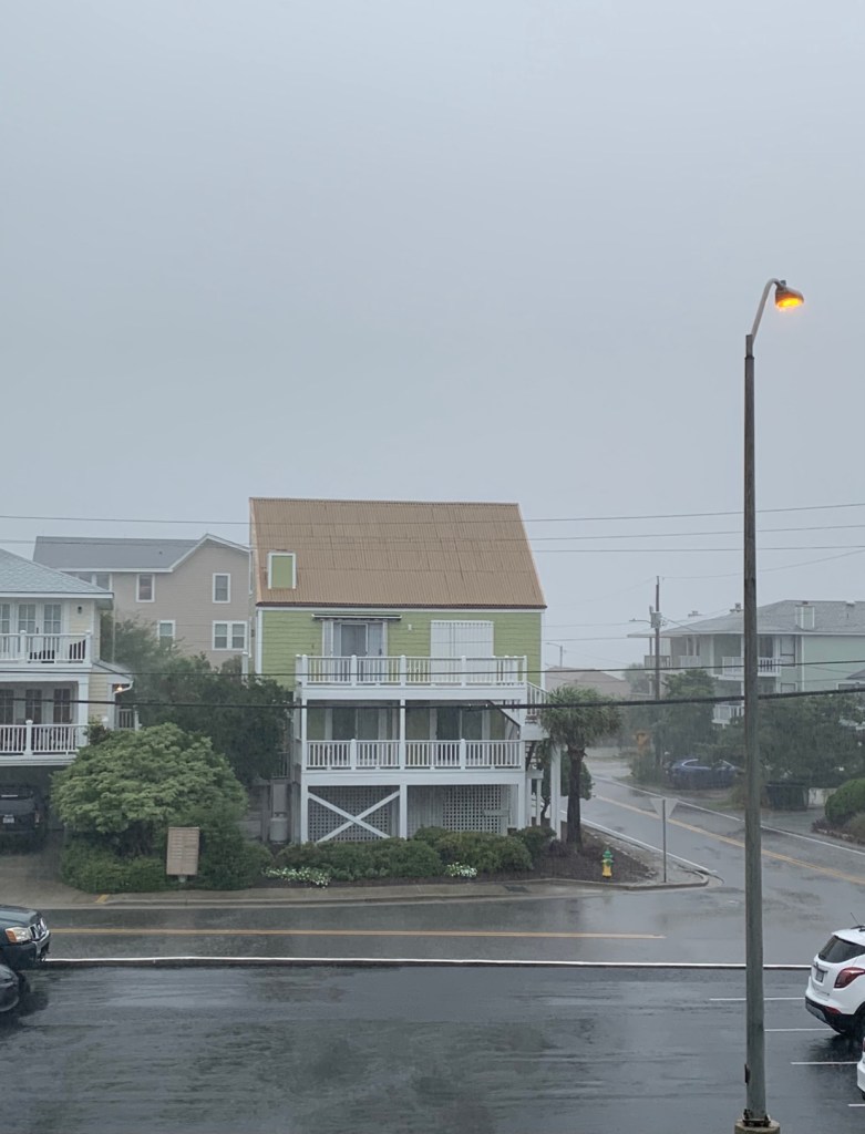 First we had to start on Monday because it was Mark’s long weekend to work. They are so short staffed he was barely able to get an entire week off. We didn’t choose to fly this time because we had heard of all the nightmare delays and no rental cars. So we decided to do the drive. We meant to leave out at 6:30 AM but we were delayed a little and didn’t get started until almost 7:30. I mean after all I did have to spend a little extra time snuggling the babies and arranging food for them. Molly and Scruffy had already been taken to a couple of family members for the week. Also Mark couldn’t find his wallet after we packed the car so we spent some time backtracking. He finally found it in the back seat. Take into account it was Monday and not Sunday and lots of traffic to deal with especially near Knoxville because it was morning rush hour. So it is no wonder when we rolled into the grocery store for supplies, after we arrived at the beach, we forgot the coffee. Not to mention we were in the middle of a terrible thunderstorm and coastal flooding was predicted. It rained and rained.