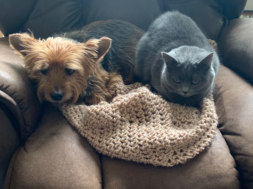 I absolutely love the costume!! Way too cute! So “Shady” Sadie [wonder where you got that name-lol] and the fur tribe are staying. Yep, they would be difficult to get rid of. Although, neither Scruffy nor Queen Kitty look very happy about the whole deal. Means they have to share you. Scruffy will faint, for sure. lol You, Crazy Cat Lady, you. 😻