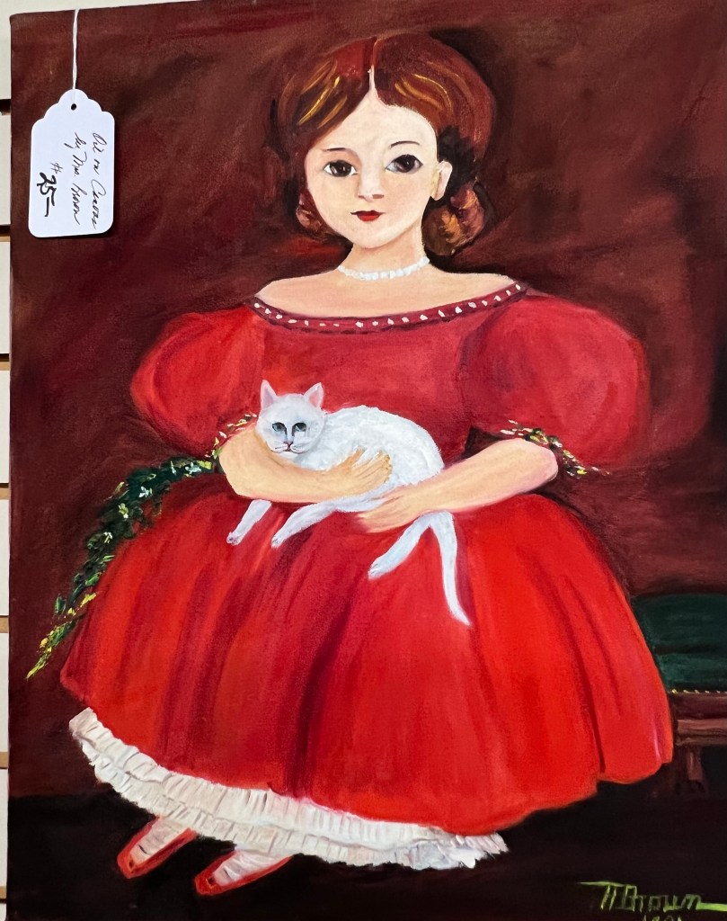 I just loved this painting of the girl with her cat. I really love the red color of her dress. I think it will stand out anywhere I hang it. And it was half off of the price listed!!!! Score!!!