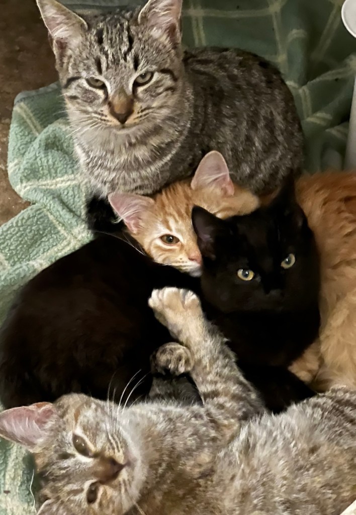 One day in early August, Allie Cat, also known as Mama, came back from one of her long walks trailing four kittens. They were adorable little fluff balls. We made plans to have them spayed and neutered and then give a couple of them away. HA!!!! somehow that never happened.