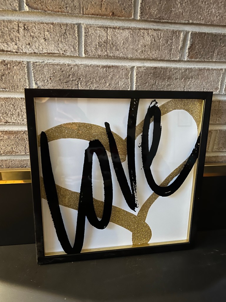 My love picture I bought at Hobby Lobby. I bought it on the clearance rack for $5.00. I think it fits perfectly for Valentine’s Day.