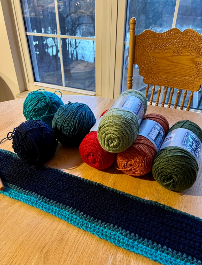 I have pulled off of knitting for a minute to work on this temperature blanket. The colors of yarn coordinate with the daily temperatures. I have been recording the average temp every day since January 1st. I am on January 18th. The rows are really quick to crochet and by the end of the year you will have 365 rows. I am so excited about this I have wanted to do one for years. Those darkest blue colors were during the cold snap we had in January when the daily temps were only about 35 degrees F. I will keep you updated on the progress