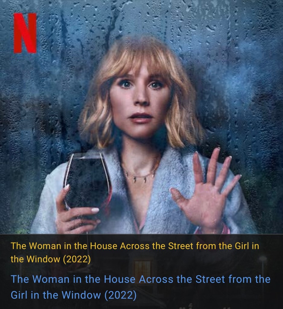 This series on Netflix, The Woman In The House Across The Street From The Girl In The Window. this is an interesting series. It has quite a bit of satire and is a little silly at times but I enjoyed it.