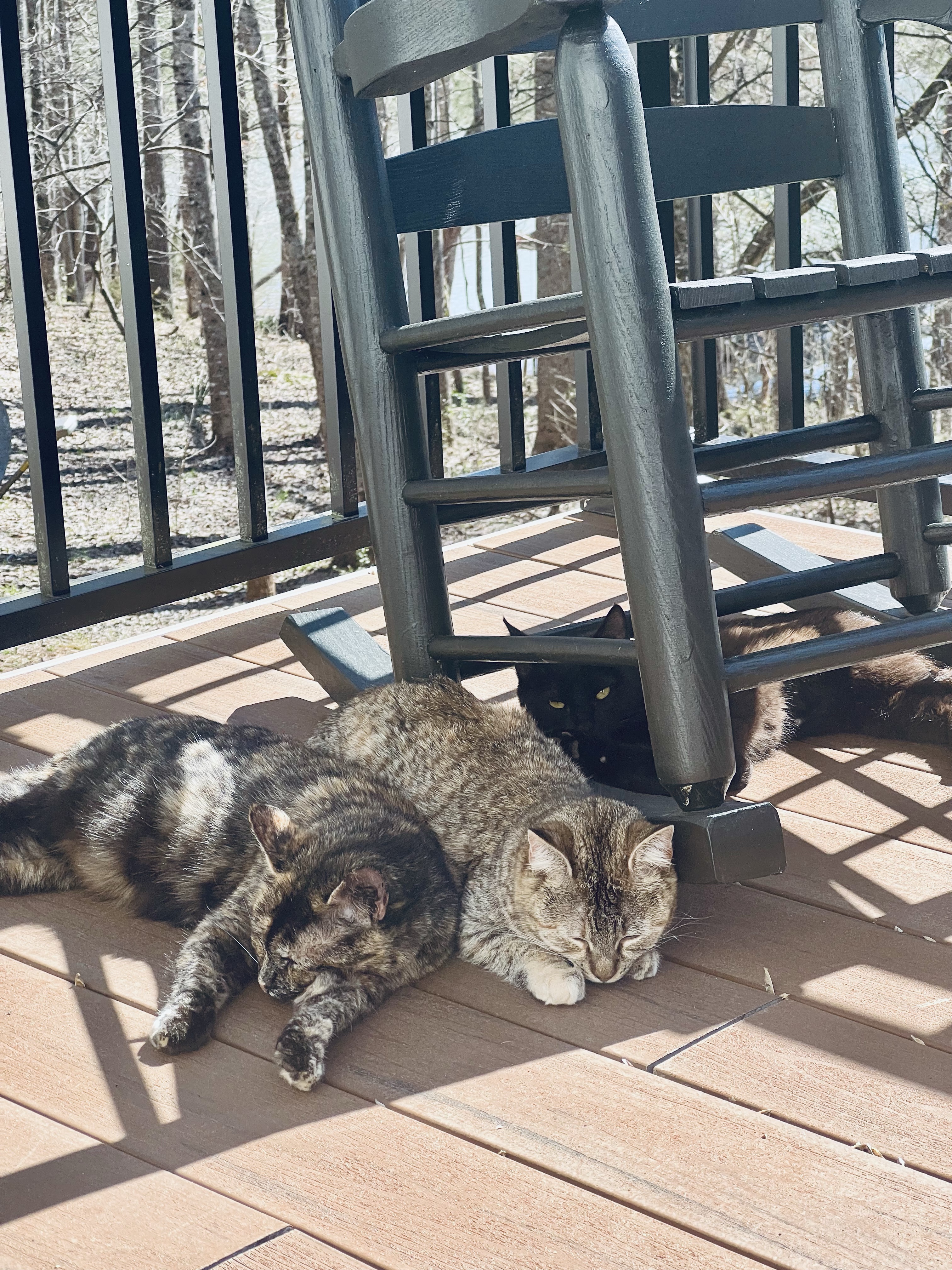 Sunday was a beautiful day. We had temps in the sixties and it was sunny. Scruffy and I spent some time on the deck with the kitties. We still miss Buster and Milo so bad and pray every day that they might come back home. I had planned to go back to the hospital but I got busy with laundry and cleaning the house so I decided not to go. I called my sister and talked for a bit. She had had a few visitors already and I could tell she was tired. I did a grocery pick up at Walmart. It was Mark’s weekend to work so he was gone both weekend days. I also worked on some knitting and read a book I got through my Libby online library. The book is due tomorrow and I have already renewed it once. I need to finish it. I have two more to finish within the next week or two.