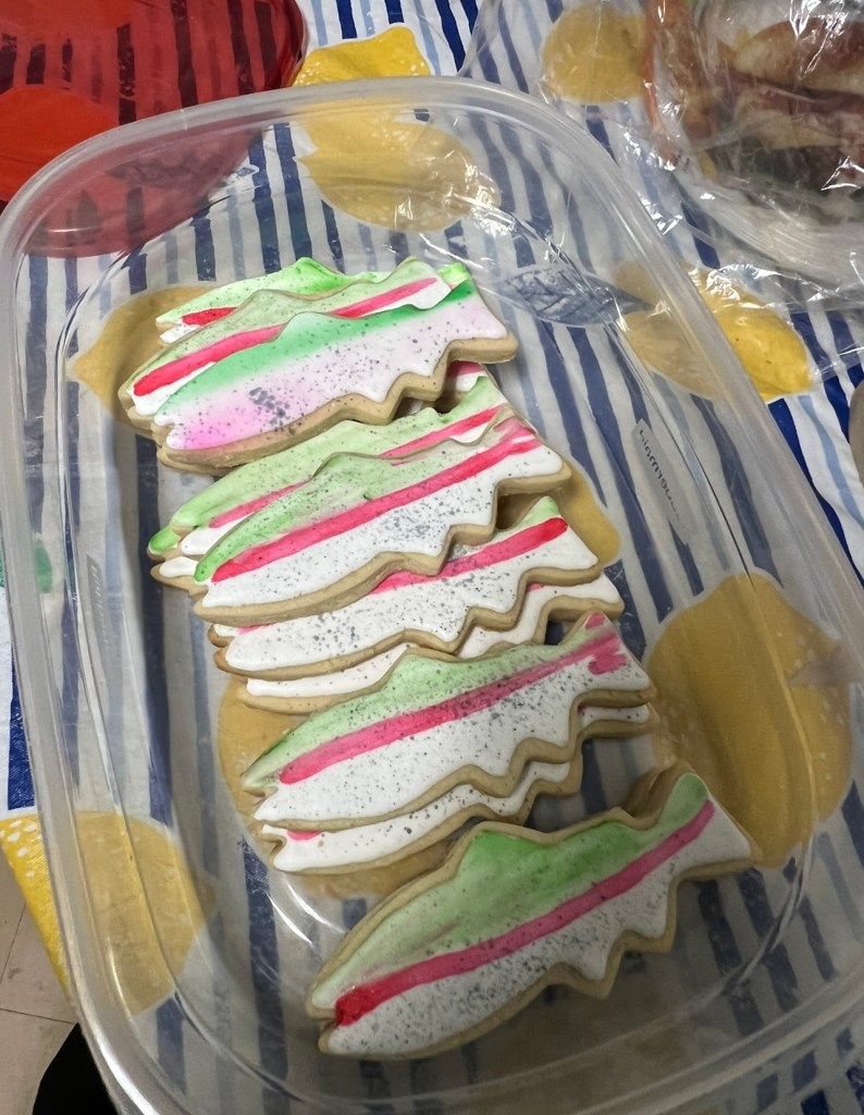 One of our co-workers brought these Rainbow Trout cookies to work. Aren’t they adorable? They were delicious too. It was very fitting because we have Rainbow Trout stocked in our lake at work.