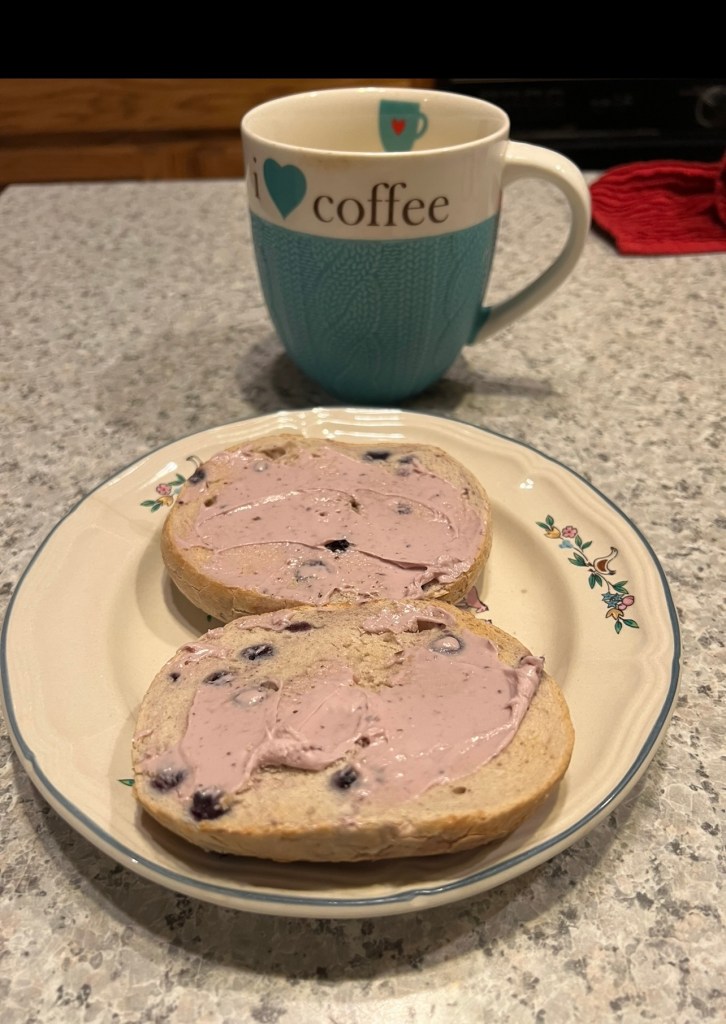 I love these blueberry bagels with blueberry cream cheese. I guess you can tell I like blueberries.