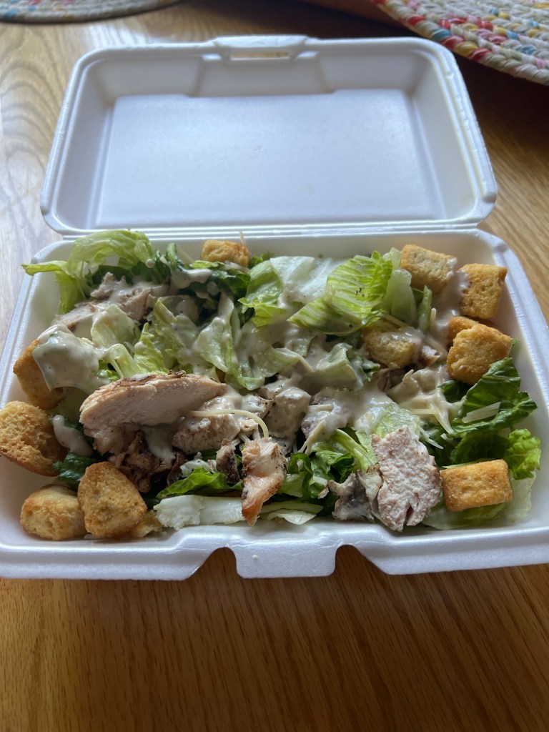 We finished up the day going into town and getting dinner and bringing it back home. I got a yummy chicken Cesar salad.