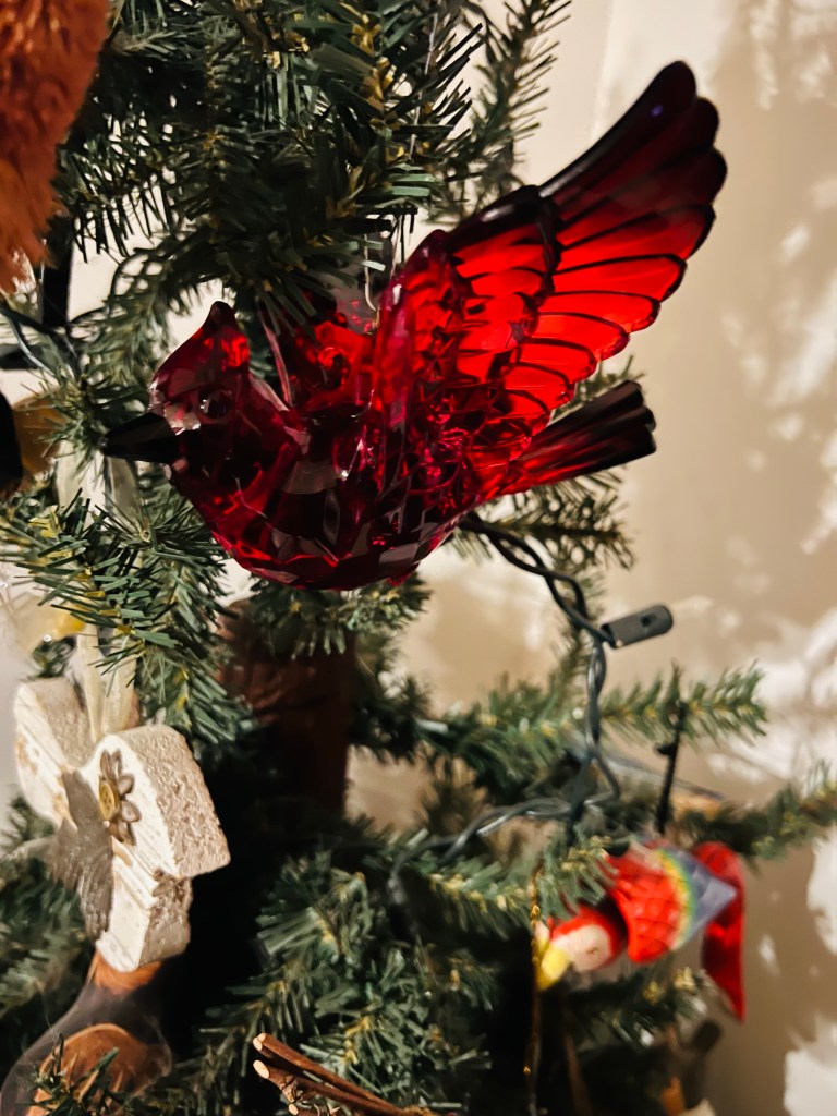 I just had to have this Cardinal for my bird tree. There is a saying that the sighting of a Cardinal brings a message from a loved one who may be far away. This is the way it goes: