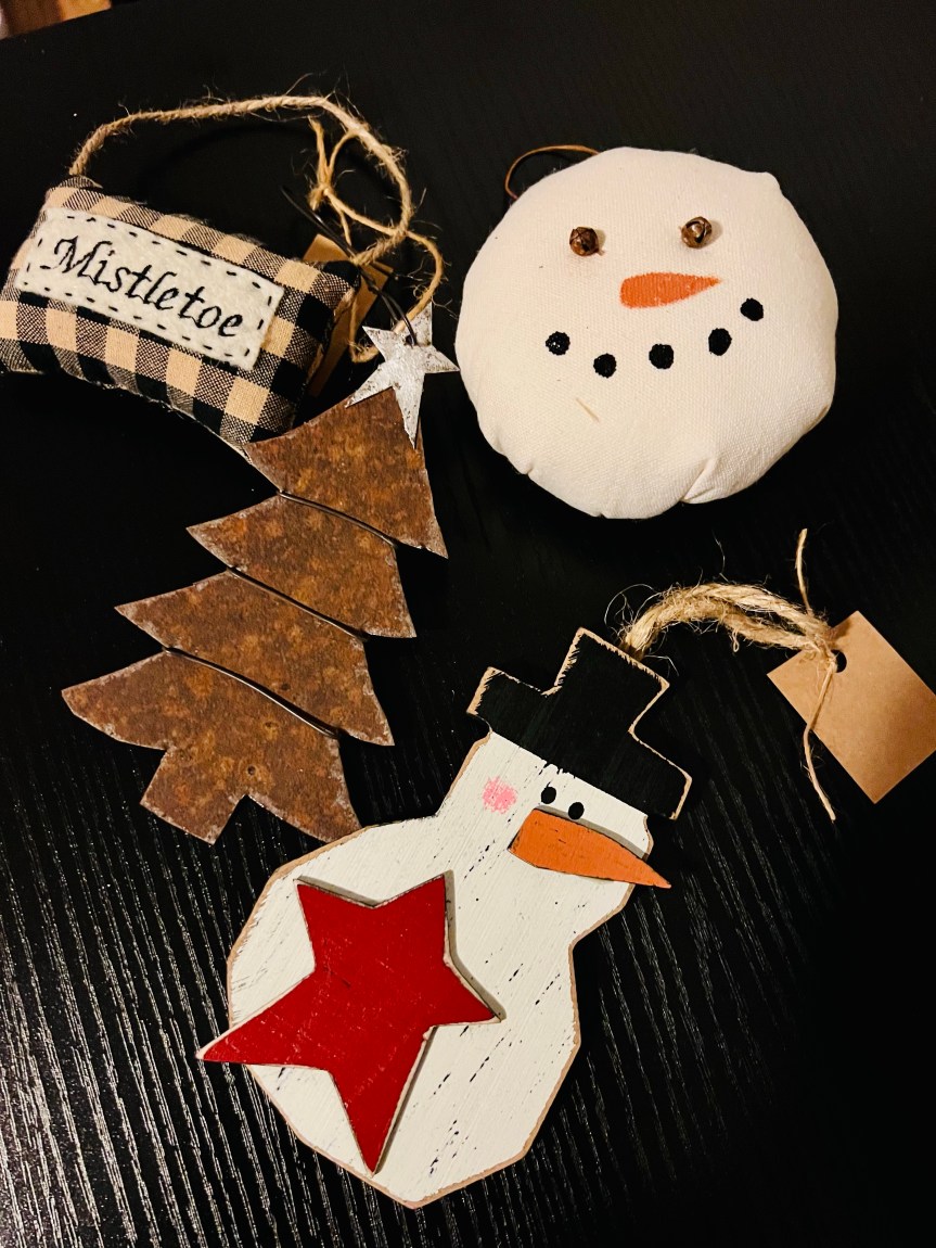 I bought a few ornaments. Some of these were handmade from the lady who first rescued our big orange kitty Gus. She, Heather, has a booth at a local antique mall and she is so talented. And of course I am so grateful for her connection to getting us our precious Gus.