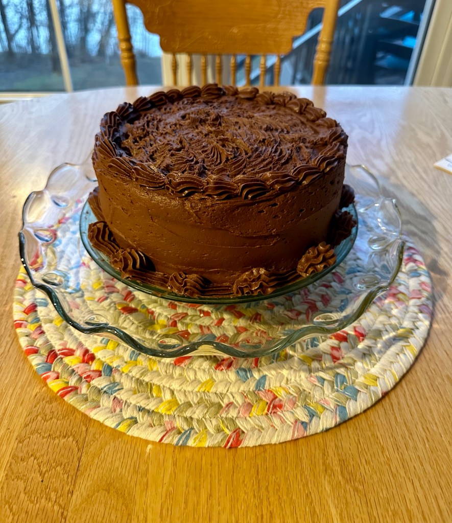I decided over the weekend to put out some Easter decorations. It’s not that I am not a fan of St Patrick’s Day but I just don’t usually decorate for it. I am on to Easter. We had a fairly slow and quiet weekend. I didn’t really cook a lot. I made a cake. I have been wanting a chocolate cake not that I need one but who ever really needs a chocolate cake?