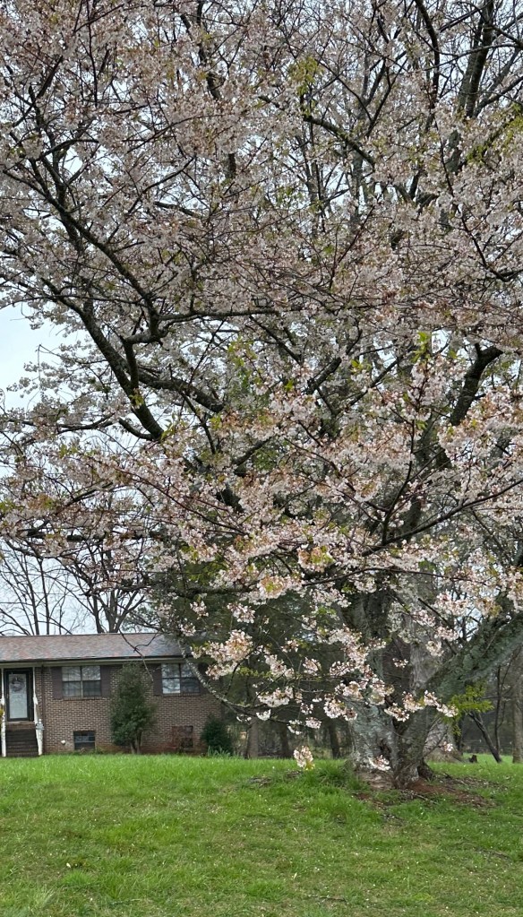 Mother Nature came out and waved her magic weather wand and zapped our poor flowering trees. Now the beautiful pink cherry trees are sort of a dull tan color. The Bradford Pear tree blooms are long gone. The Dogwood had just started to bloom so only time will tell on those. The Redbuds are still quite beautiful but they had been blooming for over a week so I guess they were safe.
