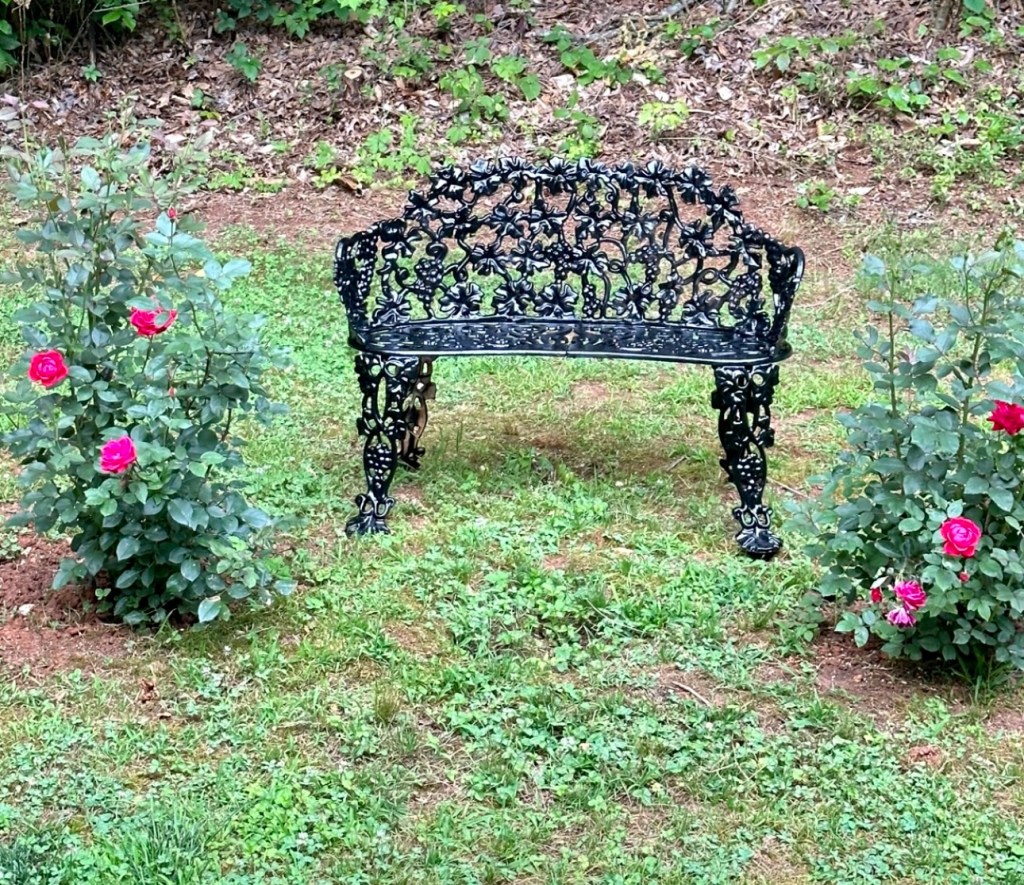 Last week I finally got around to painting my little wrought iron bench. I did the chair a while back. This bench was in pretty bad shape. It came from my mother in law’s house. It had been in her garage for many years. It had a lot of rust spots on it. I scrubbed it down and painted it black. I used a spray paint with primer. I love the way it turned out.