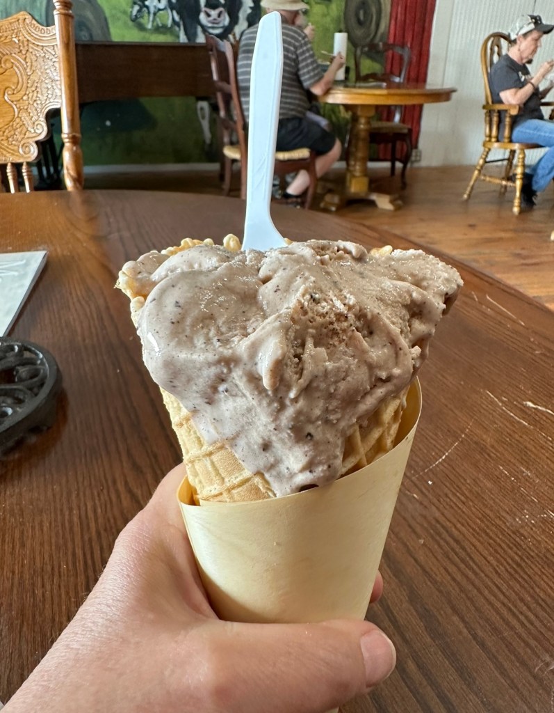 Peppermint Pattie. They also make the waffle cones daily. This is a single scoop!!! Yummy.