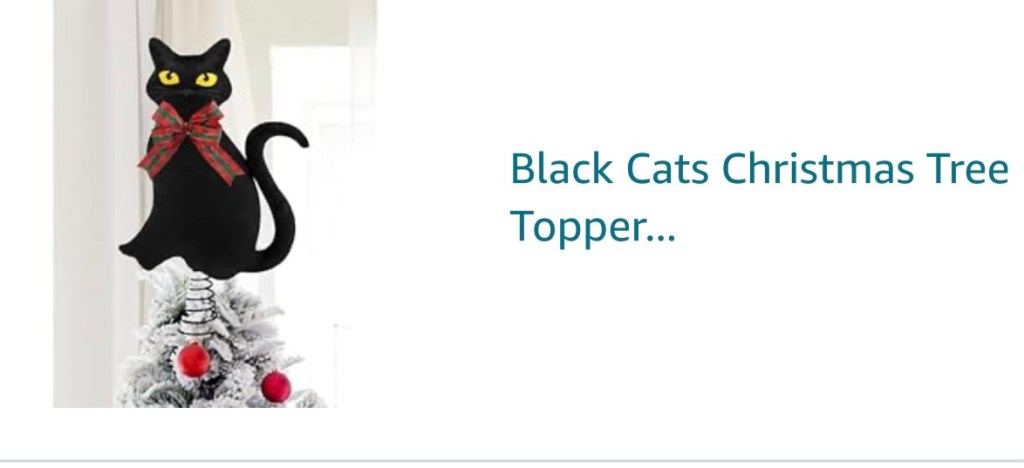 First of all I wanted a new Christmas tree topper this year. I wanted something a bit unusual. I looked on Amazon for a cat tree topper and found this one. I love it!!! It came with two scarves. One for Christmas and one for Halloween. It looks just like my Sadie.