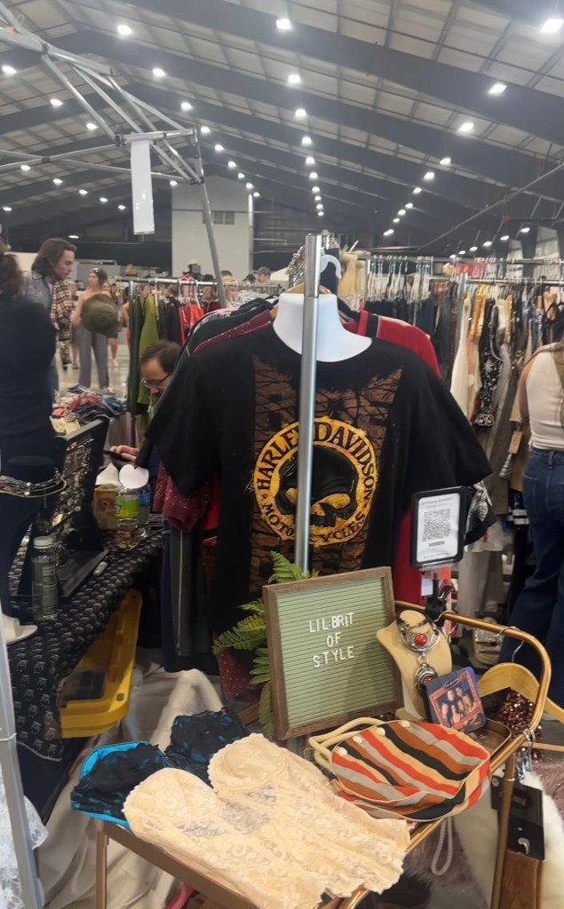 It cost $12.00 to get into the expo. Once inside we found rows of booths set up. People were selling vintage clothes, purses and jewelry. Most vintage clothes will not fit me. They are really small but I still like to look. Now, when I think vintage, I think of clothes from the sixties and seventies. But one woman told me she had all of this vintage clothing from the early nineties. WHAT??? It’s hard to believe that was more than thirty years ago. That made me feel a little vintage. Anyway, It was a lot of fun. I apologize for the blurry pictures some of them I took from a video I did. We looked around and spent a few hours there before heading back home. We stopped for a quick dinner on the way home.