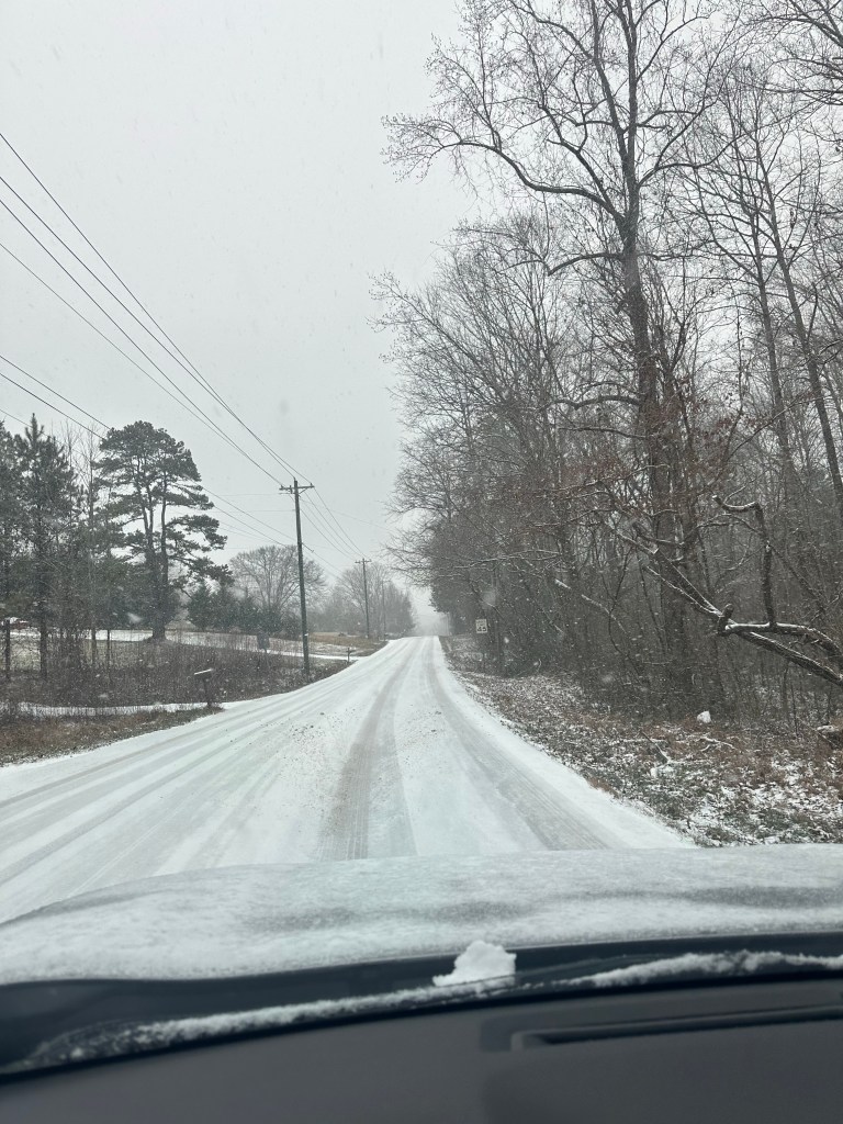 It was back to work on Wednesday and we had snow in the forecast for us on Friday. The local weather was predicting 3-5 inches. This probably wouldn’t make most of you excited but we are in the south. We don’t know how to drive in snow. We know how to go to the grocery store and clean out all the bread and milk but we just haven’t learned how to get around in the white stuff.
