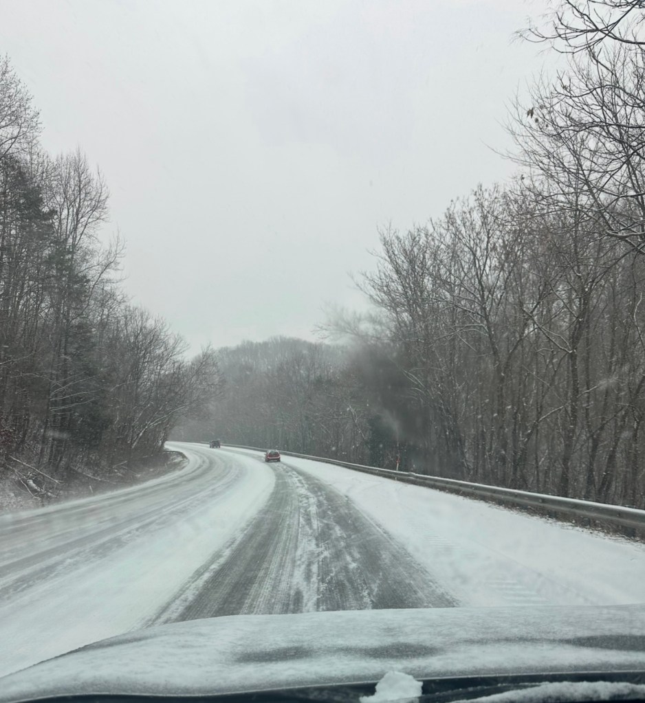 About an hour later he called and said I should come home. I had finished everything that had to be taken care of at work. I headed out. And let me tell you I had almost waited too late. I have an all wheel drive car but many people don’t. There were cars all over the road. It normally takes me about 20-25 minutes to get to work and back home but Friday it took me almost an hour to get home.