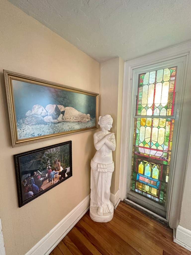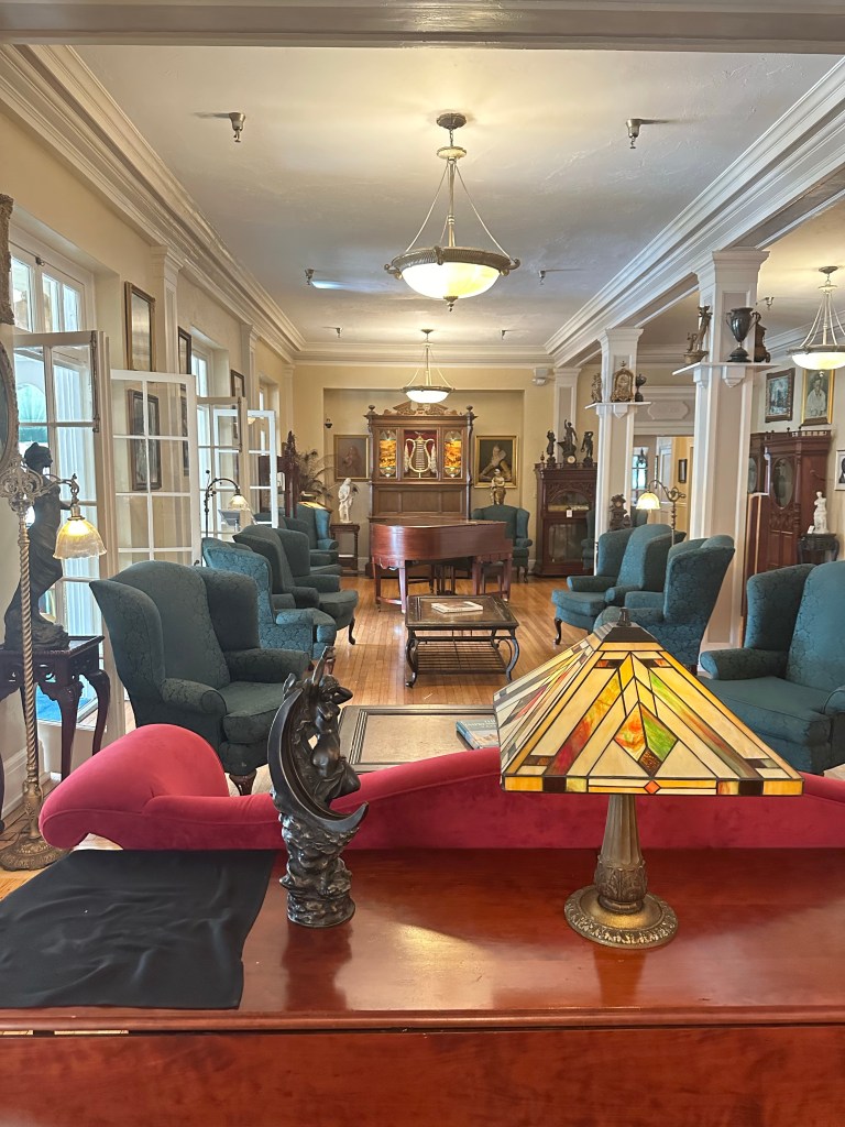 After checking in I went to my room. I had been given an old fashioned key on a huge plastic key chain. The doors still had actual locks. I would like to say the room was beautiful and stylish but it was old and somewhat musty. I understand that a 1927 Inn is going to have some challenges but I could lie on the bed and touch the door. I do know that some of the rooms at the Inn are quite luxurious. My room was very small with a huge king sized bed in the middle, the bed was actually quite heavenly and took up almost the entire room. Fortunately on these trips we do not spend a lot of time in our rooms .I will tell you that bed felt wonderful at the end of our long days of meetings and visiting area attractions. I sank blissfully into it at the end of each day.