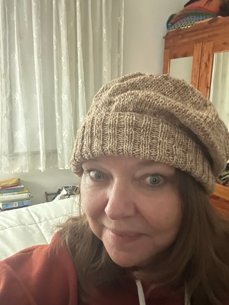 I finally finished the slouchy hat I was knitting and I love it so much I immediately started another one.