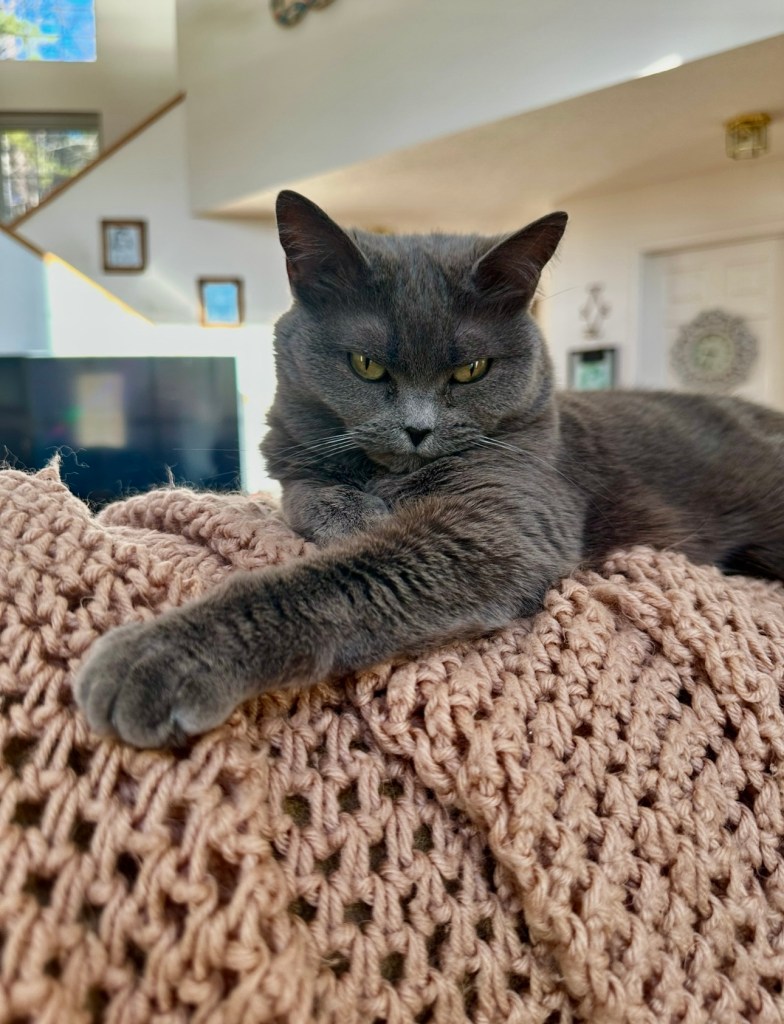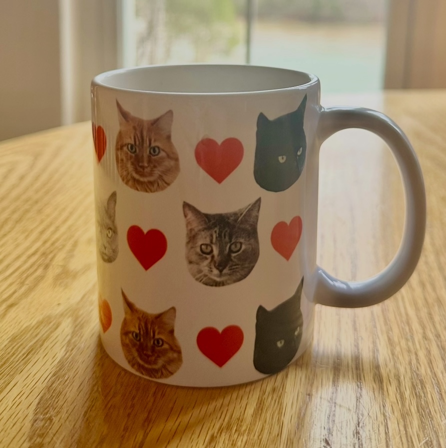 It is a cozy Sunday around here. Did you notice my coffee mug. My niece gave this to me for Christmas. I opened it and said “wow that cat looks just like Gus”. It was Gus!!! and all my other kitties. She had the mug made with pictures of all five of my kitties. I love it!!!! My family really knows how to make me happy when they buy me kitty gifts. I have to show you all of the kitty gifts I received but I will do that in a separate post. We finally got all of the Christmas decorations down and stored away. I have had the best day just knitting and drinking coffee.