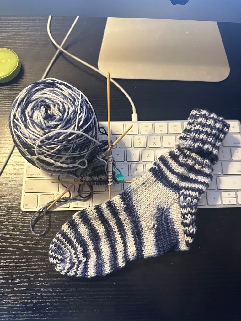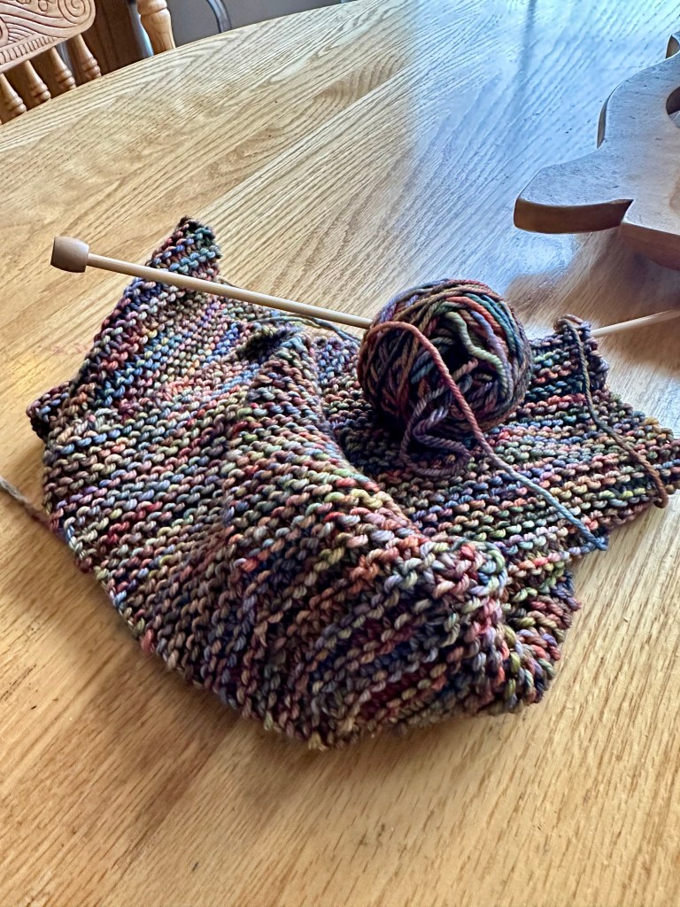 I am knitting a sock for my nephew’s girlfriend. I had hoped to get them finished before Christmas but it didn’t happen. I just finished the first sock and have started the second one. The second of a pair of socks is never fun, but you have to keep going. I am also working on a scarf. Just a simple, all knit stitches, scarf. I can’t remember where I got the yarn but it is just wonderful. It pulls perfectly and is just a joy to knit. I am taking my time with it because I hate to finish it.