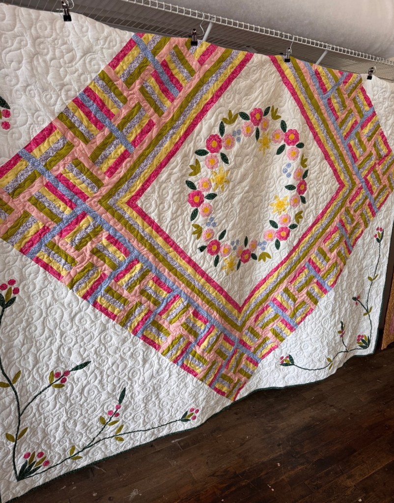 We took off early Saturday morning and decided to stop at a quilt shop on the way to the class. I had been to the shop several years ago and was happy to see that it was still there and owned by the same sweet family. Not only does this shop sell quilting supplies but also beautiful hand made quilts and other quilted items. They also do quilting classes.