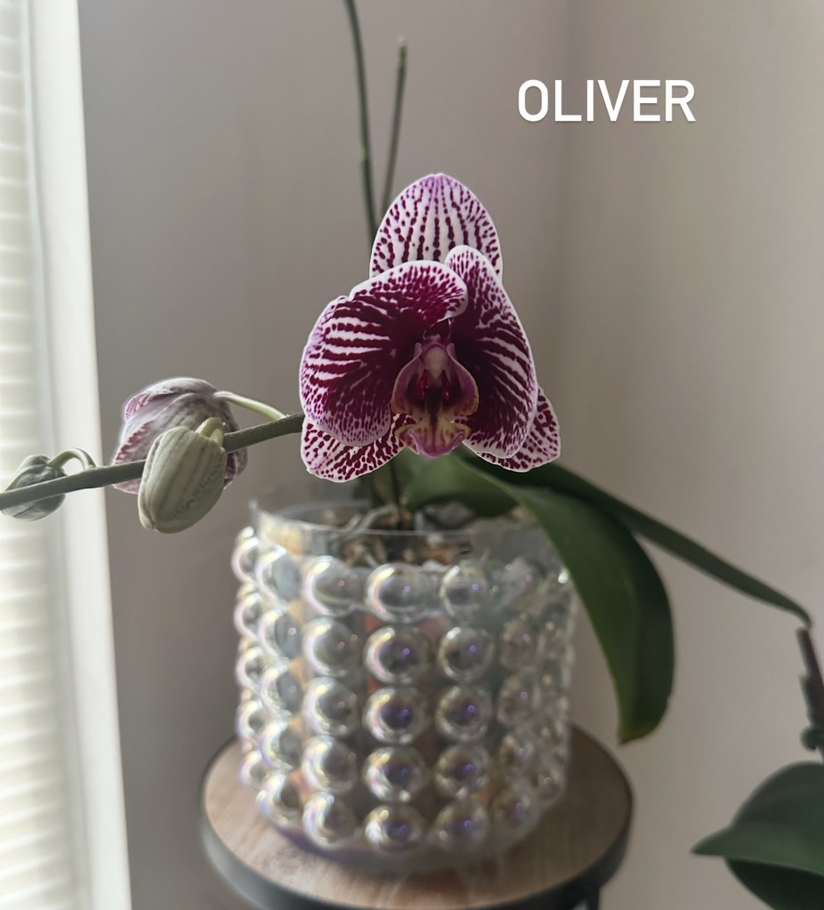 I had to do some work on my orchids on Sunday. I repotted two of them. My orchid Oliver is blooming after almost two years. His leaves were always green and strong but he didn’t bloom. I am so excited that he is finally blooming again. I don’t know why some of my orchids are male and some are female but I just see them that way.