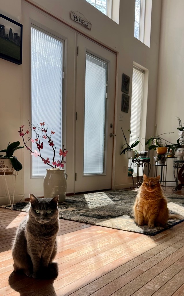 I leave you with a picture of two of my babies Kitty Kitty and Gus. It looks as though they are on guard, protecting us I guess.