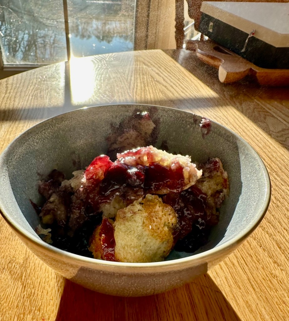 I also made a blueberry cobbler to enjoy with my coffee. I am happy to share.
