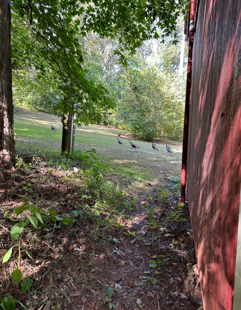 Turkeys in our yard!!! This is not all of them. I just happened to look out the window on Sunday and this is what I saw. Of course when I went out to get a picture they took off. But I love having them around.